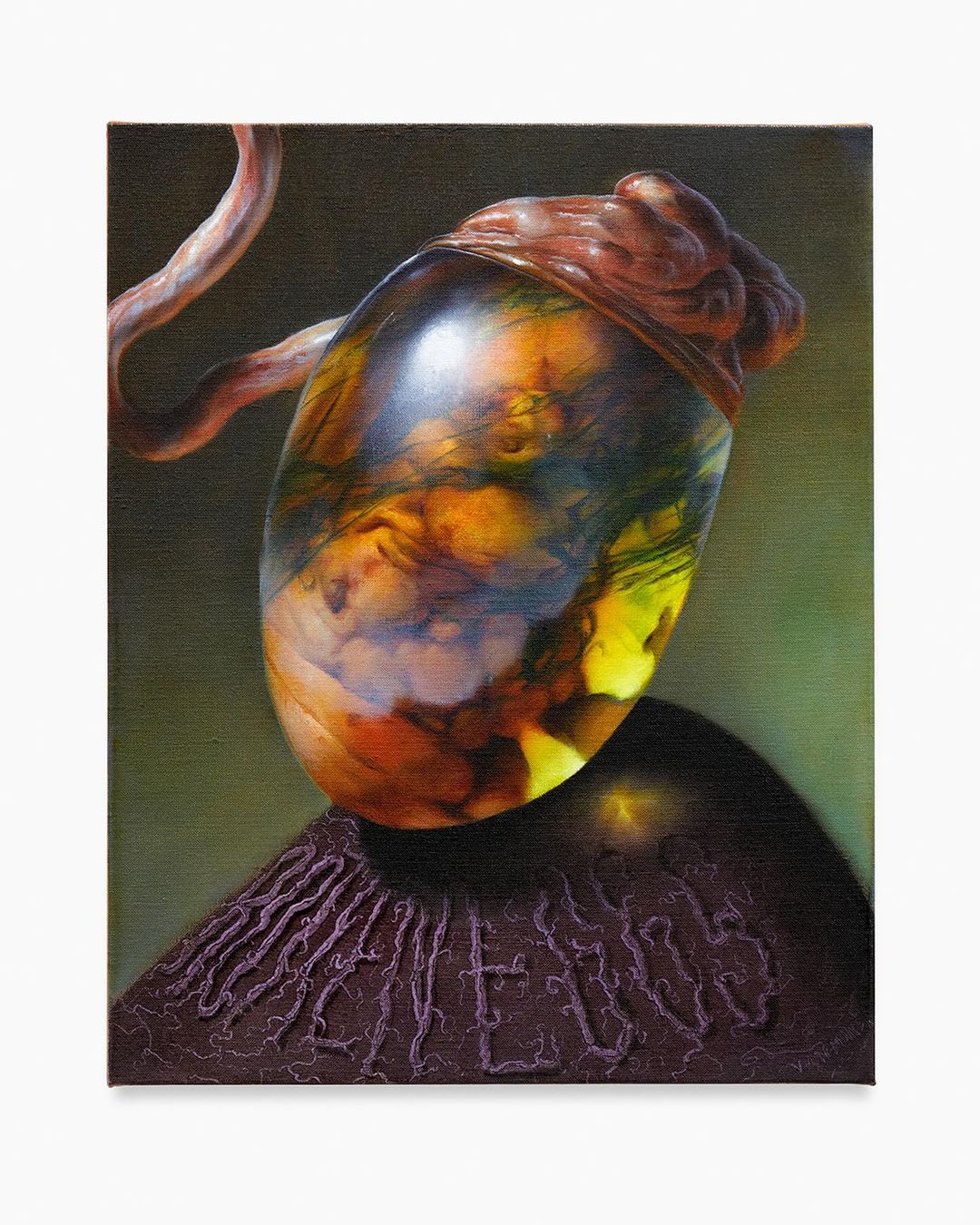 Van Minnen est surtout connu pour ses huiles époustouflantes dans lesquelles il utilise les astuces et les techniques des vieux maîtres pour construire les scènes et les personnages surréalistes les plus exceptionnels, régulièrement ornés de nombreuses références à des moments sombres de l’histoire et à des événements douteux de notre époque. Véritable passionné d’art, cet artiste originaire du Colorado aime expérimenter d’autres médiums et techniques, et après avoir récemment présenté ses premières œuvres sculpturales en collaboration avec Aaron Johnson, Works on Paper est tout simplement une suite logique. ”J’ai appris à ne pas forcer le langage de la peinture à l’huile sur ces médiums, mais à essayer de faire ressortir ce qui est unique à chaque médium “ a dit Van Minnen à Juxtapoz, expliquant son approche de ce nouvel ensemble d’œuvres. Présentant de nouveaux concepts - des portraits réalistes de combattants couverts de sang au mélange de portrait classique et d’images caricaturales en passant par des compositions atmosphériques de natures mortes et des créations abstraites - les pièces de cette exposition sont très différentes les unes des autres et de son corpus d’œuvres signature. En essayant de maîtriser chaque technique et ses caractéristiques uniques, il crée des images autour de ces éléments qui engendrent des résultats des plus inattendus.